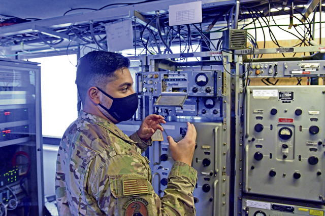 U.S. Air Force Staff Sgt. Christopher Kenny, 86th Operations Support Squadron radar airfield weather systems supervisor, works on an Air Traffic Control Tower radio at Ramstein Air Base, Oct. 8. The RAWS team is responsible for maintaining the main radios that interface communication between air traffic controllers and pilots. This effort ensures reliable and seamless communication for the Airfield Operations Flight.