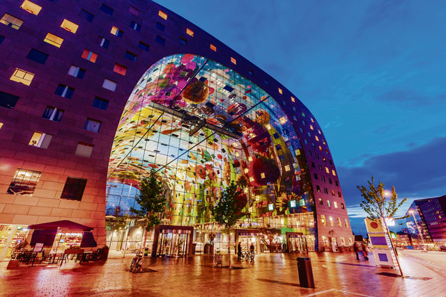 The Cube Houses, which were designed and built in the 1970s to resemble an avant garde urban forest, are just one of the fantastic architectural elements that define Rotterdam. The city is home to the Netherlands’ second largest population, Europe’s busiest port, and is arguably one of the most interesting cities on the continent. Beautiful bridges, including the blazing red Willems bridge and the white swan-shaped Erasmus bridge, span the Maas River and are wonderfully illuminated at night. Skyscrapers jut upward at odd angles and give the city’s skyline an eclectic character. The famous Markthall – which lies directly across from the Cube Houses, is a massive glass and steel rainbow-shaped wonder that contains a variety of shops, eateries, and kiosks. Visitors can find art etched into buildings, sketched on murals, tattooed onto locals, and hanging from shopfronts and museums. Rotterdam is a feast for the soul.