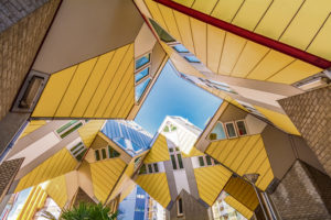 Upon arriving in Rotterdam, the last thing I expected was to feel like I had just stepped into a spaceship. But after entering one of the city’s famous yellow Cube Houses, there was no denying it: I may as well have been on a mission to Mars. Odd angles surrounded me. Open space soared upward and outward. From somewhere upstairs, near where the cube’s walls converged in a sharp point, shouts of joy erupted from our children. They had reached the house’s apex. And it sounded like the view was something special.