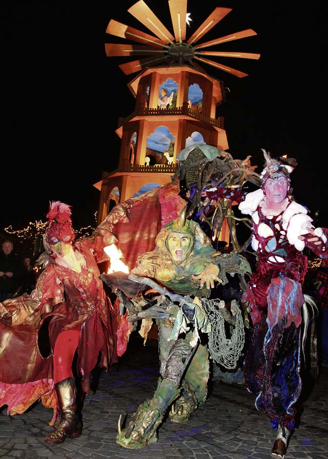 A 12-meter tall Christmas pyramid, life-sized nutcrackers, a dwarfs’ forest and a big nativity scene will lure visitors as well. A toboggan run with snow from the Alps will provide some winter fun Monday to Friday. A nostalgic merry-go-round, mythical creatures, forest and water ghosts, and a dragon will provide some more excitement for children.