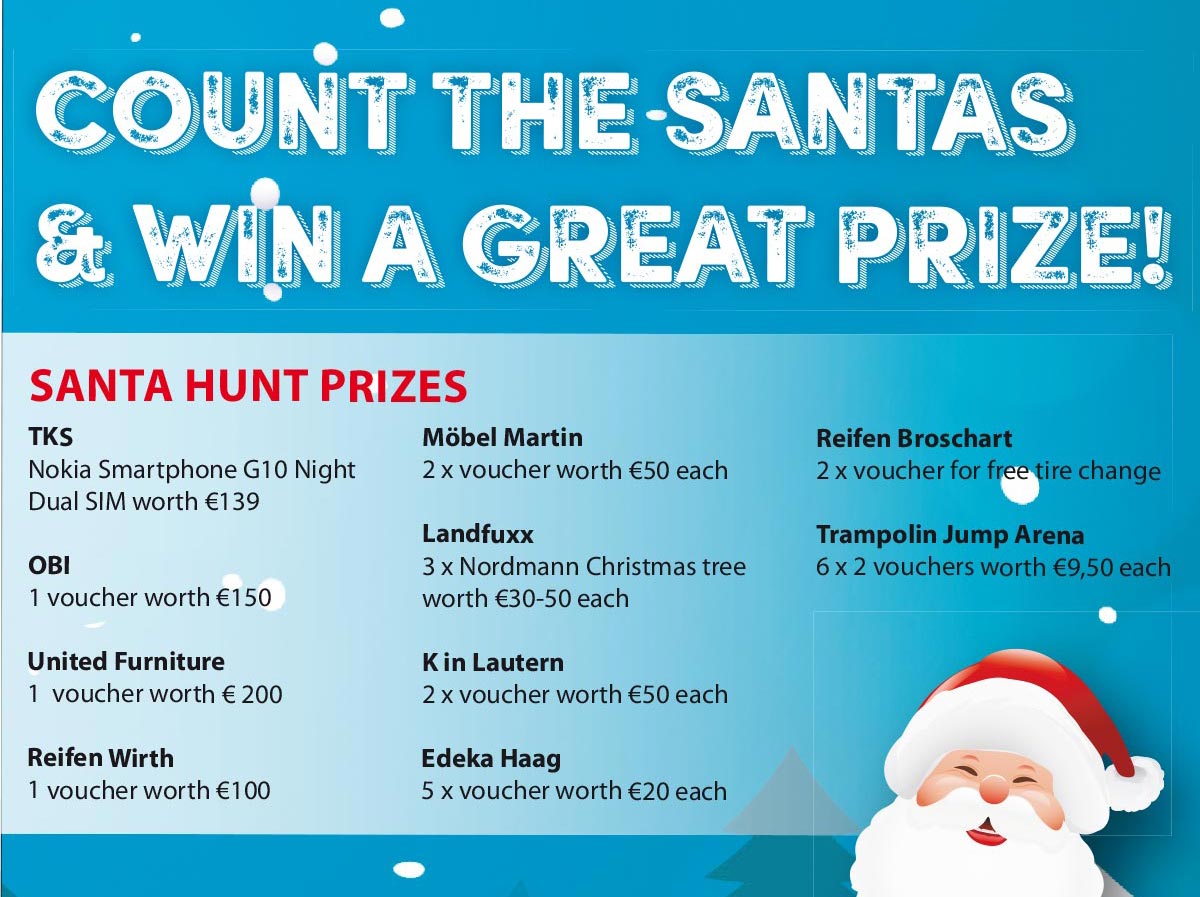 COUNT THE SANTAS & WIN ONE OF THE GREAT PRIZES BELOW!