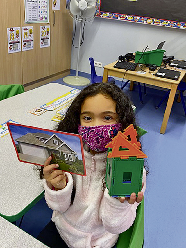 Ayva Freeman created different homes using pictures and snap blocks.