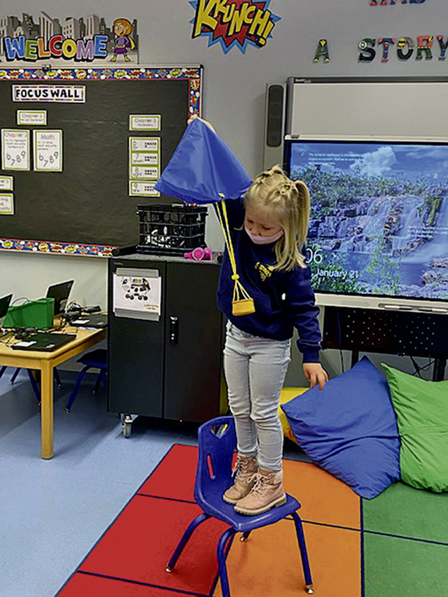 Olivia Carrico determines which material and shape create the best parachute.