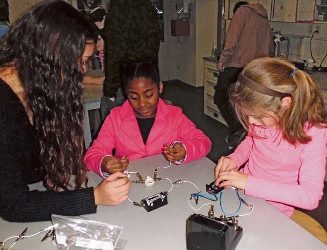 For four days, these adolescents and children, separated by age, intermingled to engage in activities involving magnetism, light, electricity, forces, motion and properties of matter. With six different stations that each younger student rotated through, it’s no surprise the room was filled with excitement and energy. Each demonstration taught one of the aforementioned parts of physics.
