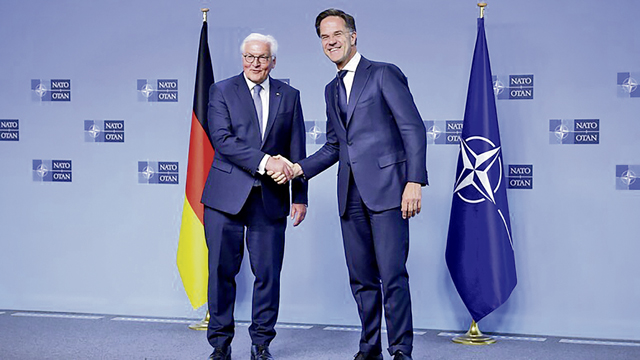 The Secretary General and the German Federal President laid a wreath together at the NATO headquarters in Brussels and held bilateral talks. Mr Rutte emphasised that a strong Germany matters for Europe’s security and for global stability, “with troops along the eastern part of the Alliance, jets patrolling the Baltic skies, and ships protecting key supply lines and critical infrastructure in the Baltic Sea. Germany is also the largest European contributor of military aid to Ukraine,” he said.