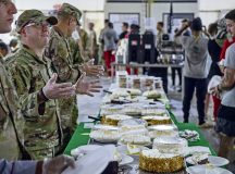 Service members share Thanksgiving meal down range