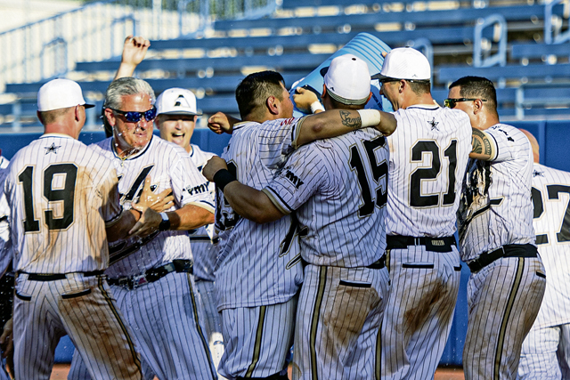 Members of the Army All Men’s softball team celebrate after defeating team Air Force during the Armed Forces Men’s Softball Championship at Devon Park in Oklahoma City, on Aug. 18, 2024. The Army men’s team defeated the Air Force men’s team 28-11 to win the championship. The 2024 Armed Forces Men’s and Women’s Softball Championship hosted by USA Softball at the USA Softball National Hall of Fame Complex from 13-19 August features Service members from the Army, Marine Corps, Navy, Air Force (with Space Force personnel) and Coast Guard. Teams will battle it out for gold. (U.S. Air Force photo by Staff Sergeant James Crow)