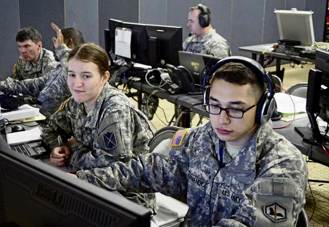 “Our job on the intelligence team is to provide predictive analysis in our area of operations based on trends in missile activity,” said Pfc. Andrew Hernandez, intelligence analyst with B Co., 24th Military Intelligence Battalion, 66th Military Intelligence Brigade, located in Wiesbaden. “I like this exercise because there are Soldiers here from all over with different skills to exchange.”