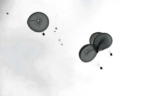 Hands on preparation for the aerial supply delivery began a week prior with members of the 5th Quartermasters and 16th Sustainment Brigade rigging the palletized water with parachutes at Rhine Ordnance Barracks in Kaiserslautern in preparation for the drop.