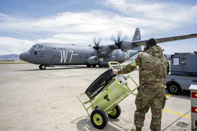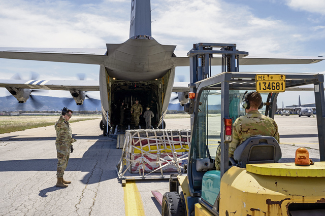 Throughout the exercise, three C-130J Super Hercules aircraft from the 86th Airlift Wing joined Hellenic Air Force C-130H Hercules crews to execute various airlift missions and joint training events, including low-cost low-altitude and container delivery system airdrops, static line and military free fall jumps, low-level tactical flight maneuvers, aeromedical evacuation scenarios, Airfield Marking Pattern (AMP)-4 landings, combat offloads and forklift familiarization.