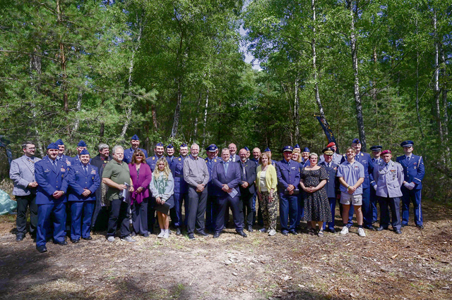The guests of the ceremony were driven to the memorial site in the middle of the Mußbach forest by local World War II era historical military vehicles. Once the plaques had been unveiled and the military and local officials spoke, the descendants had the opportunity to meet the German local who found the plane crash as a young boy back in 1944. Attendees also witnessed a USAF C-130J Super Hercules aircraft flyover, took a walk through the forest to the exact spot where the survivors of the crash took refuge until captured, and gave speeches of their own to express their gratitude.