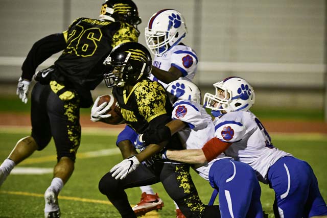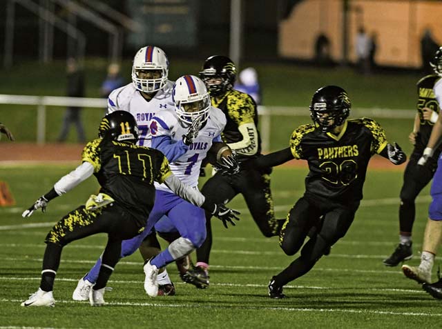 Ramstein held leads on multiple occasions in the game, staged on the Kaiserslautern High School campus at Vogelweh. The Royals scored after an early Panther fumble, when Naser Eaves caught an 11-yard touchdown pass from senior quarterback Trevor Miller. The Royals looked to Eaves on both sides of the ball and the tall junior repeatedly made plays that mattered.