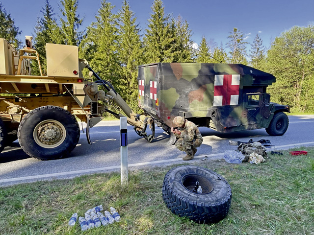 VEPRIU ROCKET BASE, Lithuania — Ninety-nine U.S. Army medical personnel from the 519th Hospital Center and 421st Multi-Functional Medical Battalion completed a 1,900-kilometer convoy from Rhine Ordnance Barracks, to Vepriu Rocket Base, Lithuania, on May 5 in support of DEFENDER 25 and a hospital field exercise known as HOSPEX.
