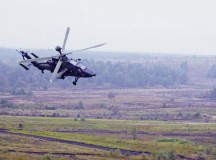A helicopter flies over the battlefield during the live-fire portion of distinguished visitor day of the German army’s Joint Demonstration Exercise Oct. 9 at the German army training area in Muenster. The German army hosted more than 100 visitors, including key leaders from the Kaiserslautern-based 21st Theater Sustainment Command, demonstrating capabilities of the German land forces.