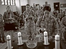 An Airman lights her candle in honor of a victim of interpersonal violence during a candlelight vigil Oct. 27 on Ramstein. According to the Center for Disease Control and Prevention, over the course of a year, more than 10 million U.S. citizens are victims of domestic violence, sexual abuse, child violence and bullying or suicide.