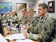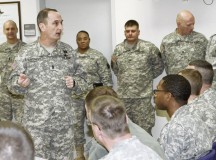 U.S. Army Europe Command Sgt. Maj. David S. Davenport Sr. visited the Soldiers of the 7th Civil Support Command Dec. 7 and answered questions in both a town hall meeting with NCOs and a luncheon for junior enlisted Soldiers.