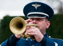 Master Sgt. David Dell, a member of the U.S. Air Forces in Europe Band, plays the trumpet during a Veterans Day event Nov. 11 at the Luxembourg American Military Cemetery in Luxembourg.
