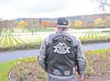 Bryan Osborne, 86th Airlift Wing Equal Opportunity director and member of the Ramstein military motorcycle club, gazes upon the rows of graves of deceased war veterans Nov. 11 at the Lorraine American Cemetery in St. Avold, France.