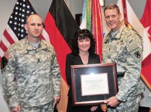 Evelyn Meaker, the chief of information systems division for the Civilian Human Resources Agency Northeast/Europe Region, received the William H. Kushnick Award during an awards presentation Jan. 27 on Panzer Kaserne in Kaiserslautern.