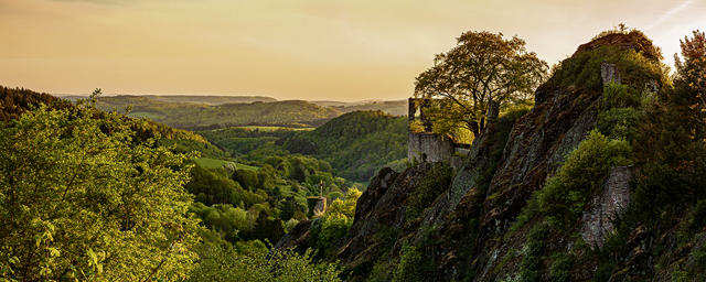 Breathtaking views into the distance and a fantastic vista onto the highest mountain in the Pfalz region, wild romantic and light flooded forests, impressive rock formations and geological findings, wide valleys with small streams that phase into the distance, fields and meadows, idyllic lakes and old county style villages.