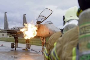 Firefighters trained for multiple aircraft crash scenarios during the week. They also learned about potential hazards on F-15 and C-130 aircraft.