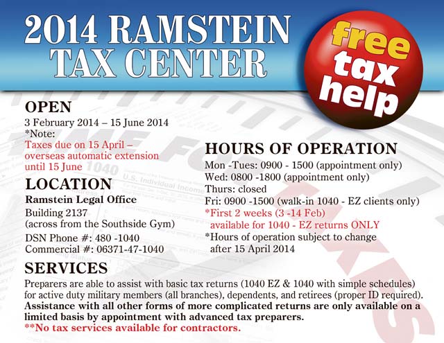 Despite announcing their official grand opening, tax preparers in the KMC have already been assisting a steady wave of customers since W-2s and 1099s were released in January. There are two tax centers available on Kleber Kaserne and the Landstuhl Military Installation that offer walk-in and drop-off services.