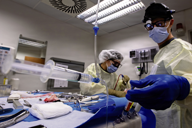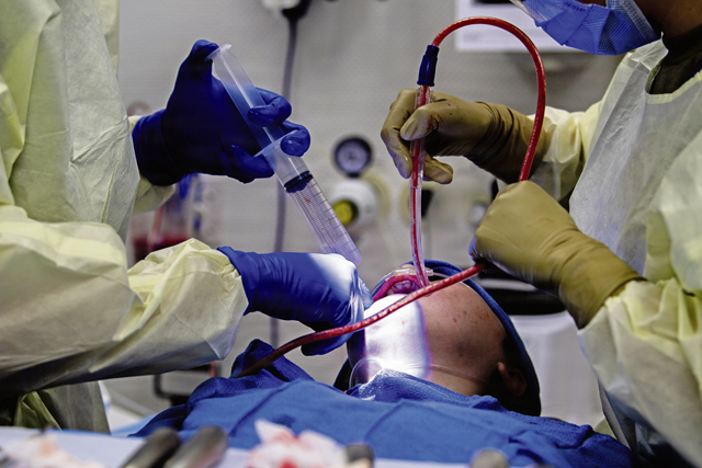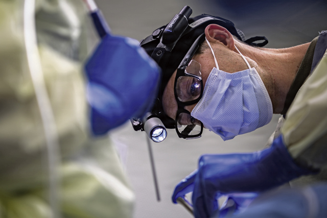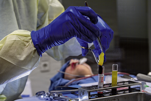 U.S. Air Force Maj. Matthew Van Hoof, 86th Dental Squadron oral and maxillofacial surgeon performs a platelet-rich-fibrin dental procedure at Ramstein Air Base, Germany, Jan. 13, 2026. PRF procedures consist of using the patient’s own blood to create a concentrated healing membrane that allows for accelerated tissue regeneration and bone growth. (U.S. Air Force photo by Airman Paden Henry)