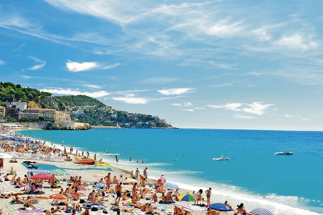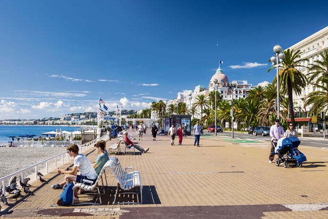 Enjoy the sun and the view of the sea from the Promenade des Anglais, which is 7 km long and stretches all along the coastline.