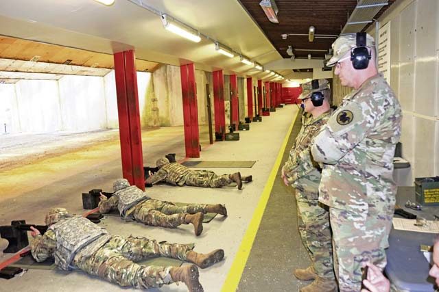 The U.S. Army Reserve’s senior enlisted leader, Command Sergeant Major Ted Copeland, stopped by the competition and visited the weapons range. He spoke with competitors there following his town hall luncheon with 7th MSC Soldiers.