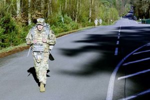That road, or ruck, march is a train-as-you-fight event, which means, of course, the donning of the tactical vest she mentioned and with heavy armor plates. That IOTV combined with a 35-pound ruck sack, and water, meant that Graham carried half her body weight. The load set her back, and she finished several minutes behind the rest of the field.
