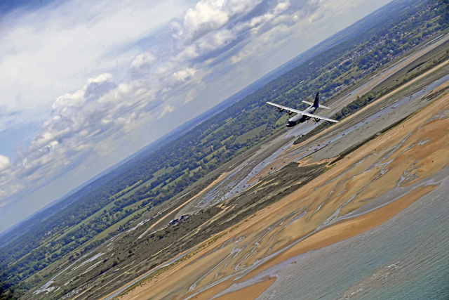 U.S. Air Force C-130js fly over Normandy to commemorate D-Day