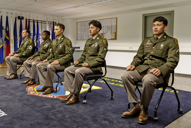 U.S. Army Soldiers assigned to 18th Military Police Brigade, 21st Theater Sustainment Command, sit on a board as part of the U.S. Army Europe and Africa Best Squad Competition on U.S. Army Garrison Bavaria in Grafenwoehr, Germany, Aug. 27, 2025. Best Squad Competitions are opportunities for units to showcase their toughest soldiers in competition utilizing events based on physical, technical, and tactical abilities under stress and fatigue. Winners of this competition will advance to compete in the U.S. Army Best Squad Competition. (U.S. Army photo by Pfc. Kadence Connors)