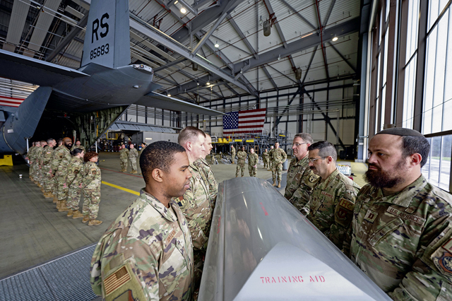 Religious support military members gather for a group photo during a joint religious support team training at Ramstein Air Base Germany, April 18, 2024. This training, hosted by 86th Airlift Wing and U.S. Army Garrison – Rheinland-Pfalz chaplains, focused on enhancing chaplains’ foundational understanding on different religions and faiths, and their ability to provide inclusive care in joint and contingency environments. (U.S. Air Force photo by Senior Airman Jordan Lazaro)