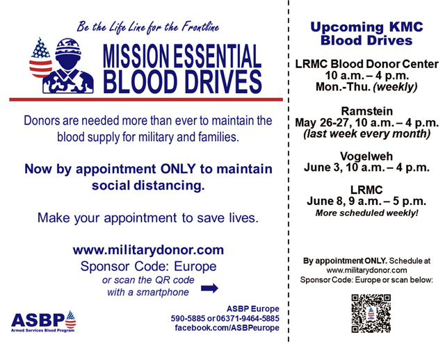 Upcoming Germany and Donor Center Blood Drives Mission Essential PRINT