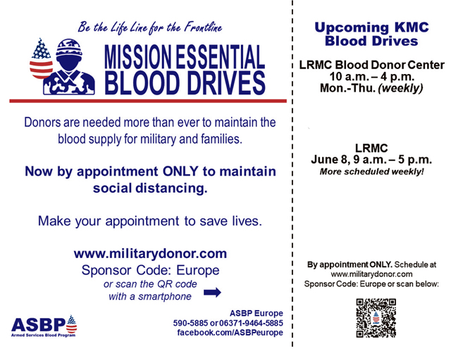Upcoming Germany and Donor Center Blood Drives Mission Essential PRINT