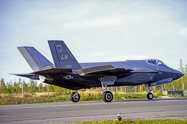 A U.S. Air Force F-35 Lightning II aircraft assigned to 48th Fighter Wing RAF, Lakenheath, U.K. lands during exercise BAANA 2024 on Hosio Highway strip, Ranua, Finland, Sept. 4. During the exercise two F-35 aircraft demonstrated landing and take off operations on a highway strip in Finland to practice Agile Combat Employment which increases the ability of our collective partners to collaborate and operate in a joint, high-intensity environment, improve readiness, responsiveness and interoperability. (U.S. Air Force photo by Airman 1st Class Tabatha Chapman)