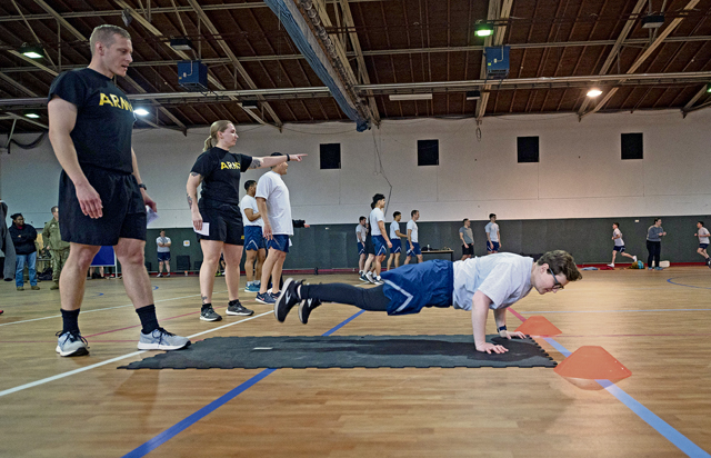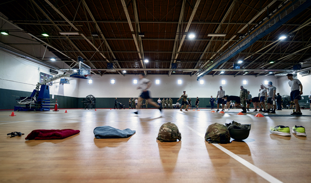 U.S. military members participate in a 11×10 meter sprint during the German Armed Forces Proficiency Badge competition at Ramstein Air Base, Germany, April 24, 2024. The GAFPB is an award given by the German Armed Forces to foreign military personnel who show exceptional physical prowess, combat skills and proficiency across various disciplines. (U.S. Air Force photo by Staff Sgt. Gabrielle Spalding)