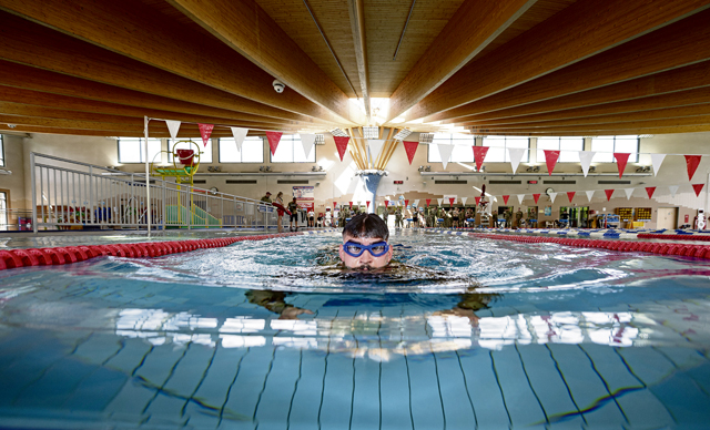 U.S. Air Force Senior Airman Sebastian Ernst, 86th Security Forces Squadron patrolman, comes up for air during a 100-meter swim event as part of the German Armed Forces Proficiency Badge competition at Ramstein Air Base, April 22. As part of the qualifications for the GAFPB, the swim was one of seven rigorous events designed to evaluate participants’ endurance, strength, accuracy and adaptability, highlighting the shared commitment to excellence within the U.S.-German alliance. Photo by Staff Sgt. Gabrielle Spalding