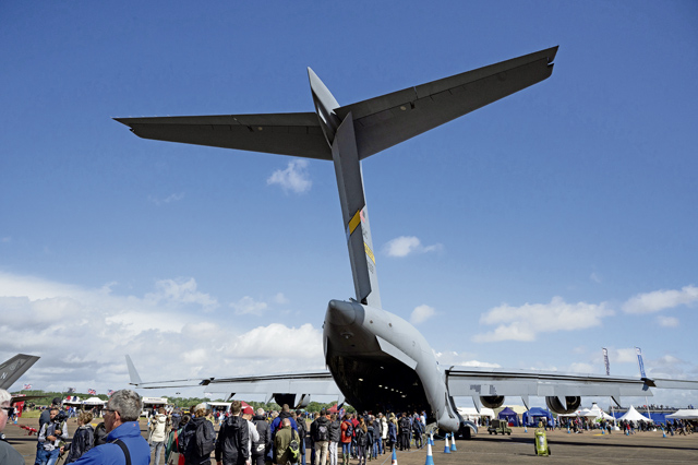 Also appearing at RIAT were two more U.S. fighters, the F-15E Strike Eagle and the F-16 Fighting Falcon, as well as the C-21, C-37, C-17 Globemaster III, and WC-130 Hercules. Additionally, the U-2 Dragon Lady was on display, plus two special operations aircraft, the CV-22 Osprey and MC-130J Commando II.