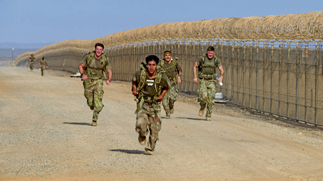 U.S. military personnel race to the finish line during the ruck march event for the German Armed Forces Proficiency Badge at Chabelley Airfield, Djibouti, Sep. 11, 2025. The trials for the badge offered a unique opportunity to U.S. service members and strengthened ties between the U.S. and Germany militaries. (U.S. Air National Guard photo by Staff Sgt. Kevin Ray J. Salvador)