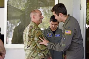 U.S. Air Force Gen. Jeffrey L. Harrigian, U.S. Air Forces in Europe-Air Forces Africa commander, stands for a group photo alongside Hellenic air force and U.S. Air Force members, at Elefsis Air Base, Greece, May 15. Harrigian visited participants of Exercise Stolen Cerberus VI, a planned, routine training event designed to help aircrews and support personnel enhance their readiness and interoperability by training side-by-side with NATO allies, like Greece, in a realistic environment.