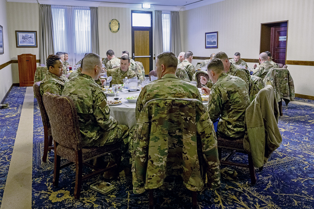 Group and Squadron commanders from the U.S. Air Forces in Europe and Air Forces Africa area of responsibility, met for lunch during the 2025 USAFE-AFAFRICA Mission Support and Maintenance Group Strategy Conference at Ramstein Air Base, Germany, Jan. 23, 2025. The aim of the symposium was to enhance the strategic capabilities of squadron leaders across the USAFE-AFAFRICA area of responsibility, equipping them with essential tools and strategies to better serve their units. (U.S. Air Force photo by Senior Airman Renan Arredondo)