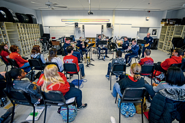 The U.S. Air Forces in Europe Band’s Five Star Brass Quintet performed for Kaiserslautern High School music students Nov. 5 on Vogelweh.