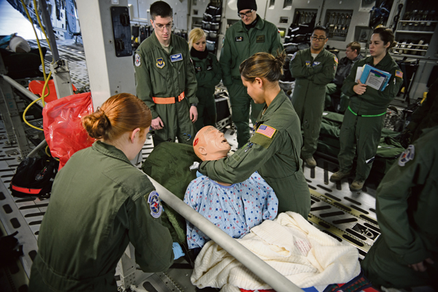 At the 10th EAEF, Staff Sgt. Jesse Visser, duty controller, gave them insight into a deployed aeromedical mission.