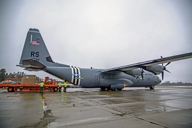 Airmen from the 4th Fighter Wing at Seymour Johnson Air Force Base, NC, and the 48th Fighter Wing, Royal Air Force Lakenheath, England, arrive at Ämari Air Base, Estonia Jan. 24. The Airmen traveled via a C-130J Super Hercules, assigned to the 86th Airlift Wing from Ramstein Air Base, to support an NATO enhanced air policing mission. NATO air policing maintains allied airspace to deliver solidarity and technical interoperability — a vital contribution to NATO’s operational success and key to enabling ally and partner nation trust.