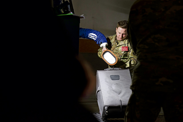 U.S. Air Force Maj. Gen. John Klein, U.S. Air Force Expeditionary Center commander, attends a tour of the passenger terminal at Ramstein Air Base, Germany, Feb. 23, 2023. Airmen assigned to the 721st Aerial Port Squadron and work in the Ramstein Air Mobility Command Passenger Terminal are responsible for ensuring military members and their families are taken care of during their travel to and from Germany. (U.S. Air Force photo by Airman 1st Class Madelyn Keech)