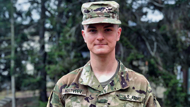 Pfc. Samuil Matveev, religious affairs specialist with U.S. Army Garrison Rheinland-Pfalz, was named the 2021 Installation Management Command Directorate-Europe’s Best Warrior in the ‘Soldier’ category during a ceremony in Ansbach, March 3. Photo credit Lisette Kin