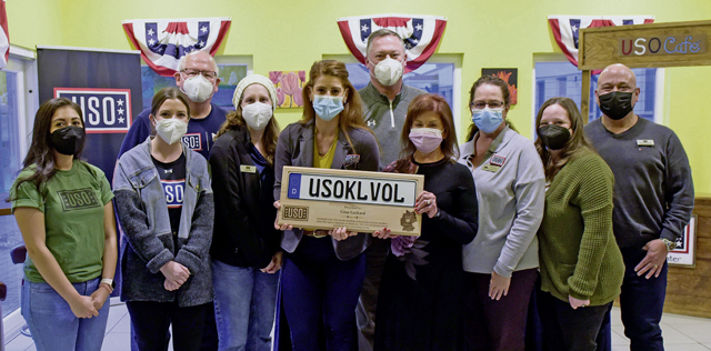 United Service Organizations staff and volunteers host an award ceremony and going-away for Gina Lockard, USO volunteer, at Landstuhl Regional Medical Center, Jan. 5. Lockard volunteered more than 1,000 hours at the USO during her time at Ramstein. The USO Warrior Center on LRMC hosts many events to boost morale for military members such as the monthly art therapy painting session for wounded or ill service members. The USO strengthens America’s military service members by keeping them connected to family, home and country, throughout their service to the nation. Photos by Airman 1st Class Madelyn Keech