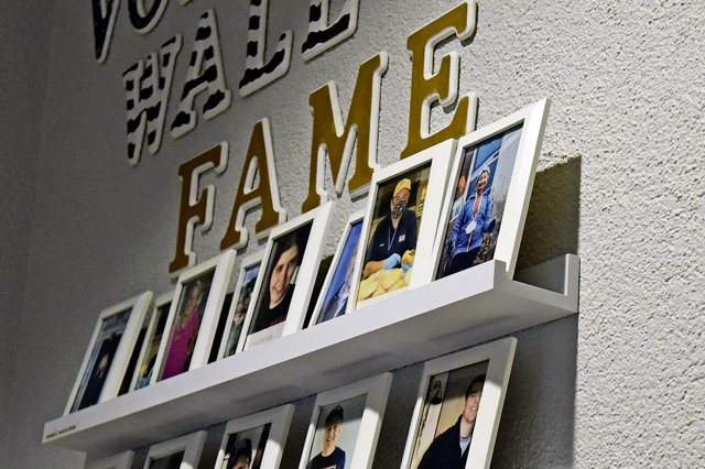 (Right) Gina Lockard’s, United Service Organizations volunteer, photo is displayed on the top shelf of the USO Warrior Center’s volunteer wall of fame at Landstuhl Regional Medical Center, Jan. 5. The USO Warrior Center runs the Bob Hope Legacy Reading Program which is intended to help military children stay connected through reading. The USO strengthens America’s military service members by keeping them connected to family, home and country, throughout their service to the nation.