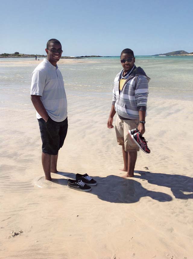 Quinton and Kenyon Jiles enjoy the sunshine while posing for a photo on Elafonisi Beach April 10 during a spring break trip to Crete, Greece.